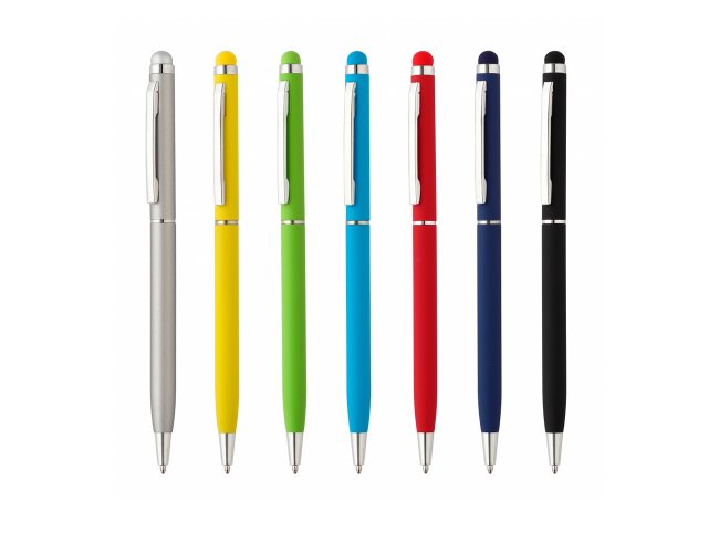 Esferográfica. Bambu. Clipe de metal. 1,5 km de escrita. Elementos em fibra de trigo e ABS. Ponteira touch. ∅11x139 mm