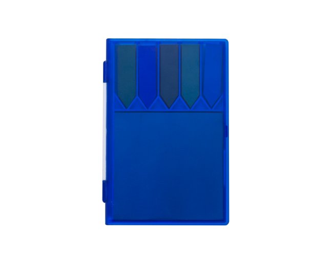 Bloco de anotações plástico com autoadesivos, capa colorida e base branca. Possui cinco bloquinhos autoadesivos com aproximadamente 50 folhas cada e um bloco maior com folhas amarelas sem pauta, aproximadamente 50 folhas.