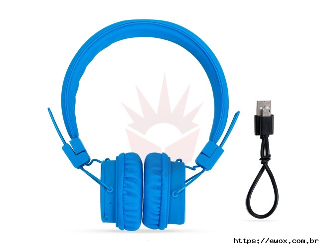 Headfone estéreo, material em plástico resistente com haste revestida de espuma e alças ajustáveis com fone giratório. E